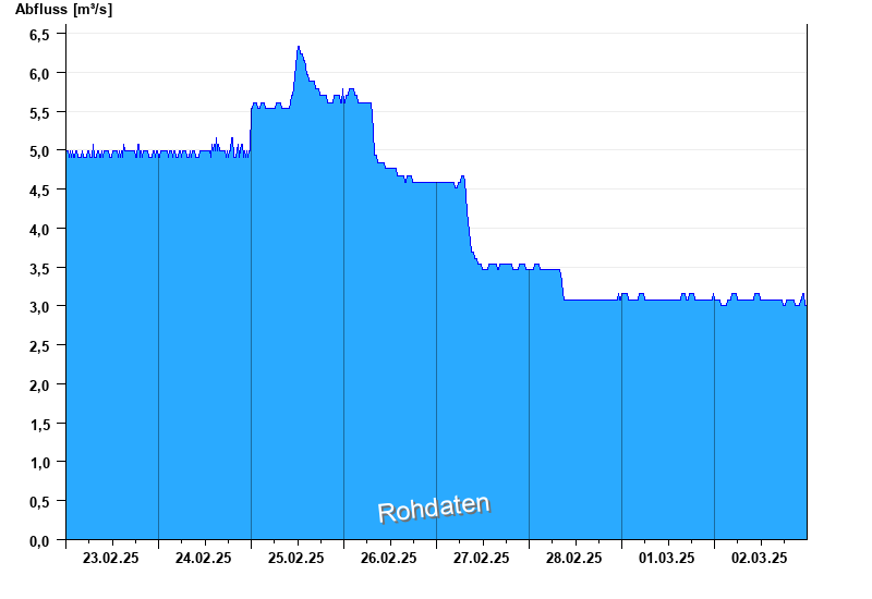 Der Pegel wird durch Baumaßnahmen unterhalb beeinflusst (Rückstau). Entsprechend sind die Abflusswerte nicht korrekt