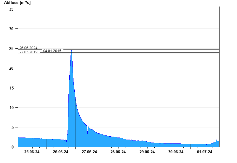 - 26.06.2024 Abfluss: 24,7 m³/s