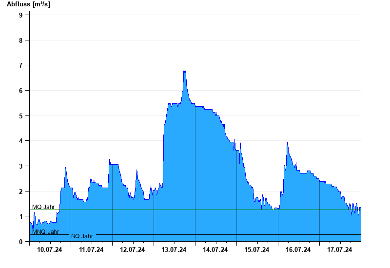 - Mittlerer Niedrigwasserabfluss MNQ 0,267 m³/s