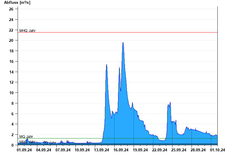 - Mittlerer Hochwasserabfluss MHQ 21,5 m³/s