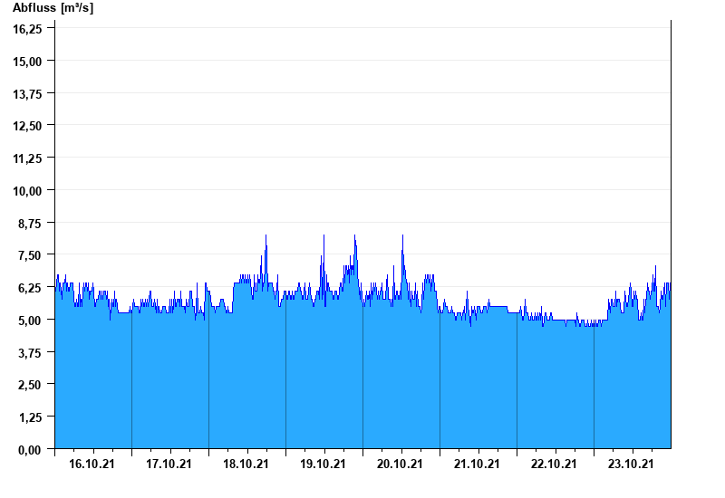 Messwerte beeinflusst durch Kraftwerkssteuerung und Kiesumlagerungen. Kiesanlandungen können bei Niedrigwasser Trockenlegung der Messinstrumente bewirken.