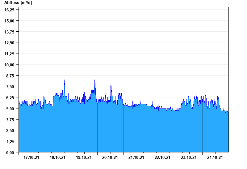 Messwerte beeinflusst durch Kraftwerkssteuerung und Kiesumlagerungen. Kiesanlandungen können bei Niedrigwasser Trockenlegung der Messinstrumente bewirken.