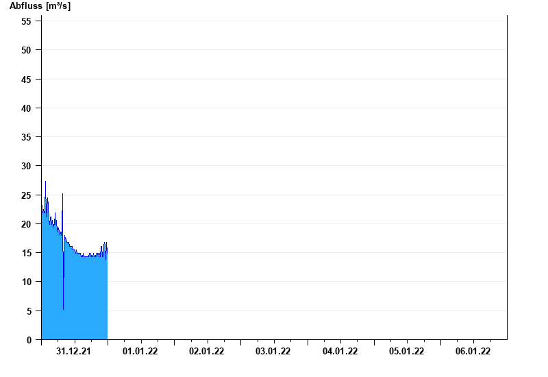 Messwerte beeinflusst durch Kraftwerkssteuerung und Kiesumlagerungen. Kiesanlandungen können bei Niedrigwasser Trockenlegung der Messinstrumente bewirken.