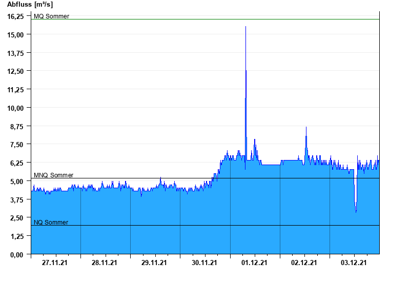 - Mittlerer Niedrigwasserabfluss MNQ 5,16 m³/s