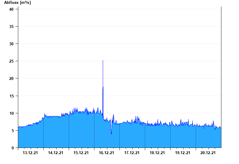 Messwerte beeinflusst durch Kraftwerkssteuerung und Kiesumlagerungen. Kiesanlandungen können bei Niedrigwasser Trockenlegung der Messinstrumente bewirken.