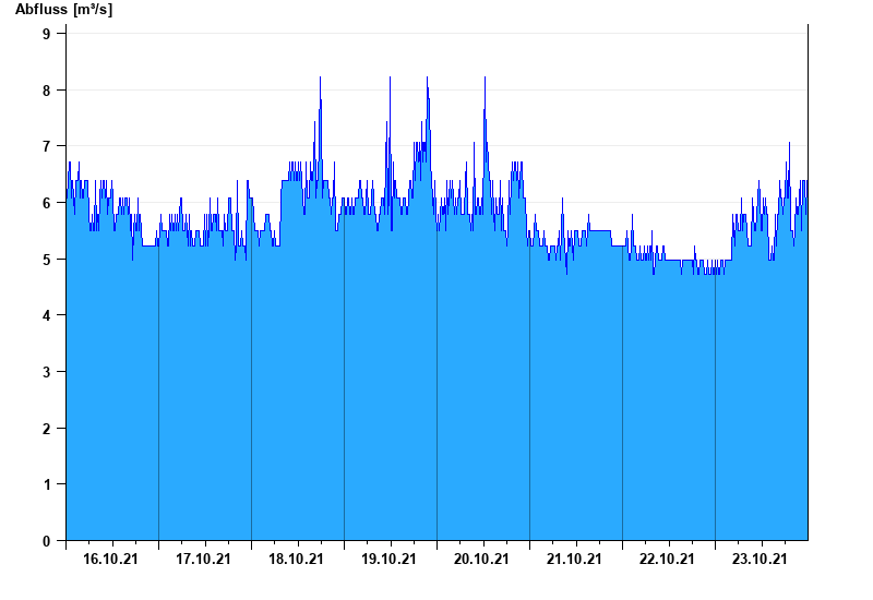 Messwerte beeinflusst durch Kraftwerkssteuerung und Kiesumlagerungen. Kiesanlandungen können bei Niedrigwasser Trockenlegung der Messinstrumente bewirken.