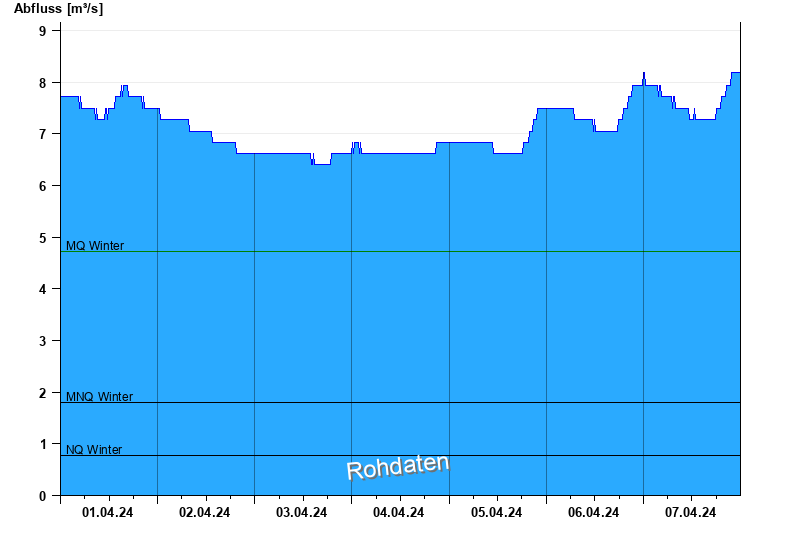- Mittlerer Niedrigwasserabfluss MNQ 1,8 m³/s