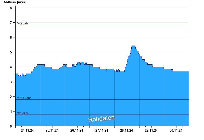 - Mittlerer Niedrigwasserabfluss MNQ 1,8 m³/s