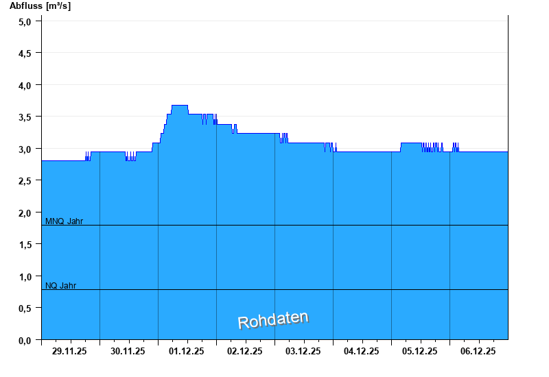 - Mittlerer Niedrigwasserabfluss MNQ 1,8 m³/s
