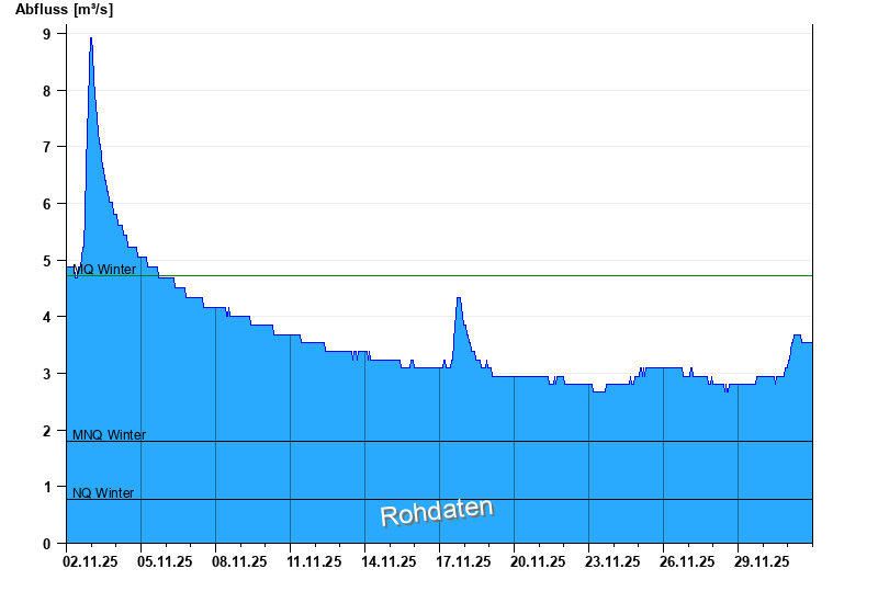 - Mittlerer Niedrigwasserabfluss MNQ 1,8 m³/s