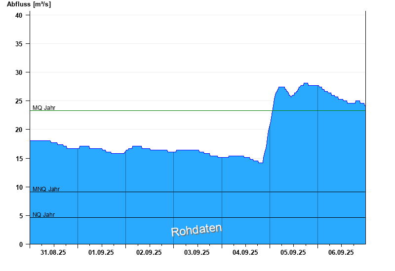 - Mittlerer Niedrigwasserabfluss MNQ 9,1 m³/s