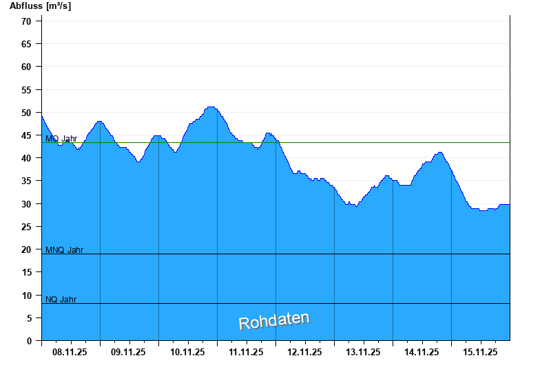 - Mittlerer Niedrigwasserabfluss MNQ 19 m³/s