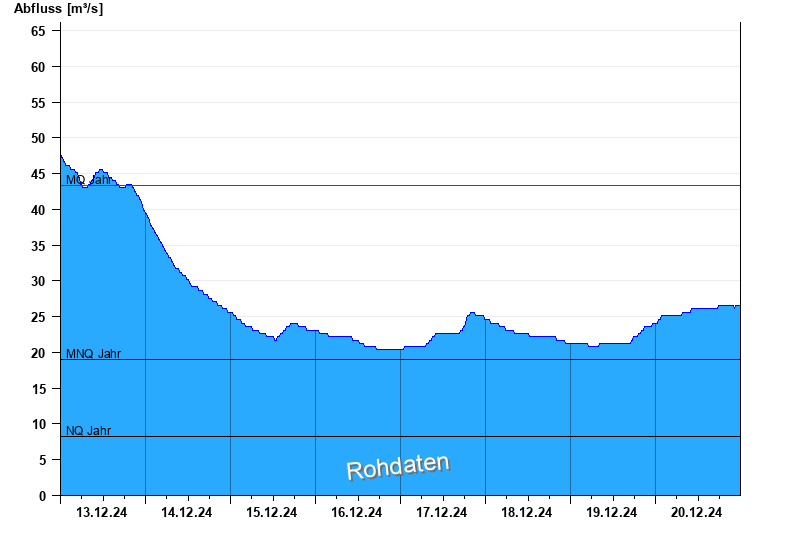 - Mittlerer Niedrigwasserabfluss MNQ 19 m³/s