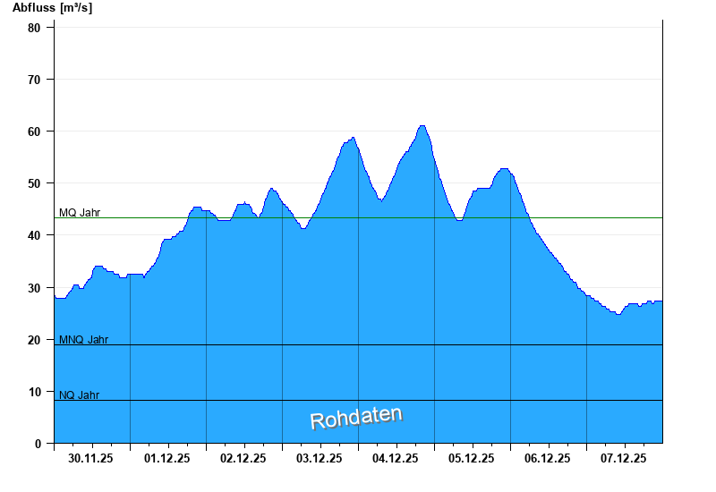 - Mittlerer Niedrigwasserabfluss MNQ 19 m³/s