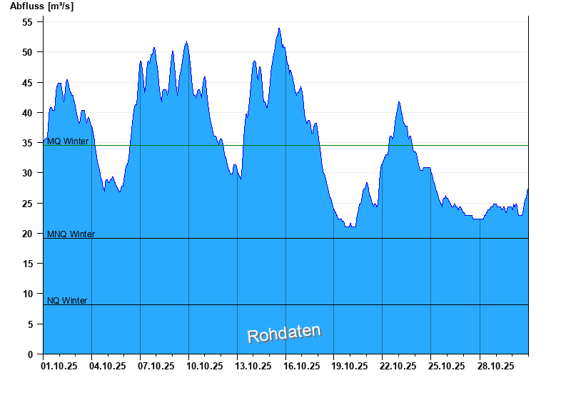 - Mittlerer Niedrigwasserabfluss MNQ 19,2 m³/s