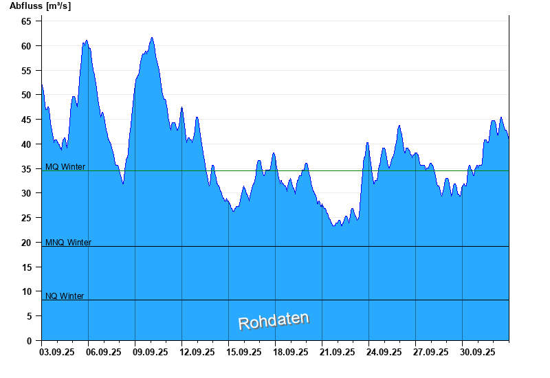 - Mittlerer Niedrigwasserabfluss MNQ 19,2 m³/s