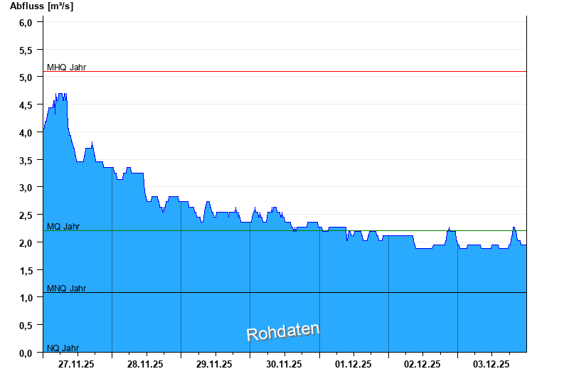 - Mittlerer Niedrigwasserabfluss MNQ 1,08 m³/s