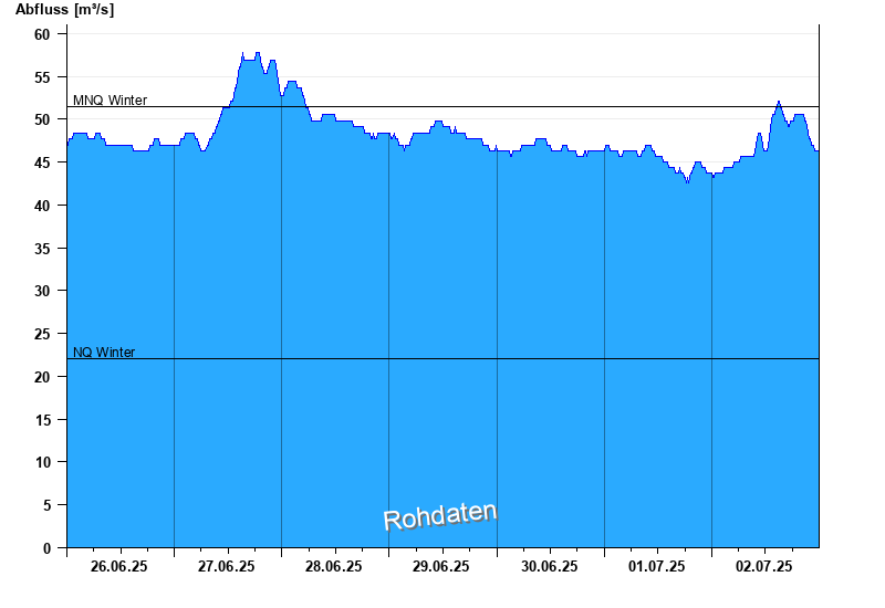 - Mittlerer Niedrigwasserabfluss MNQ 51,5 m³/s
