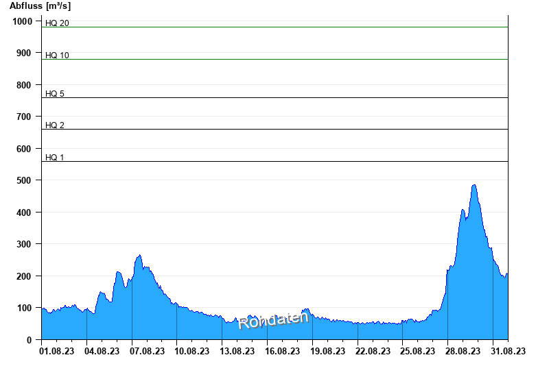 Pegel durch außerordentlichen Kraftwerksbetrieb beeinflusst.