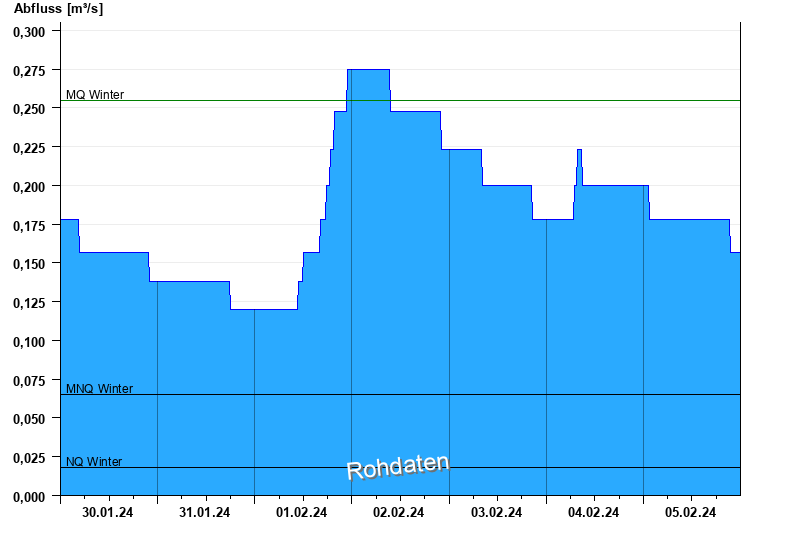 - Mittlerer Niedrigwasserabfluss MNQ 0,065 m³/s