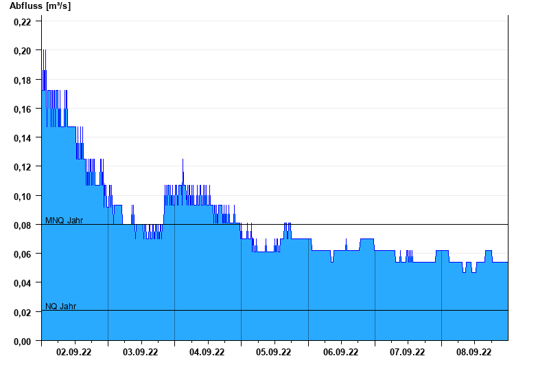 - Mittlerer Niedrigwasserabfluss MNQ 0,08 m³/s