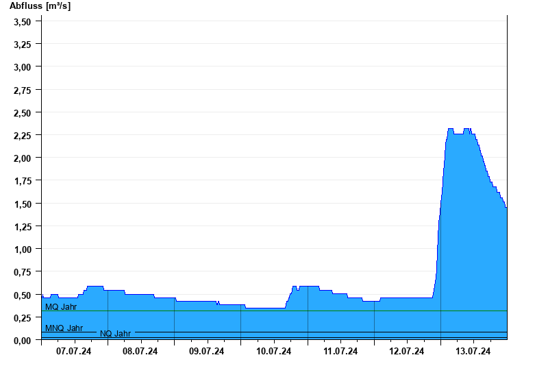- Mittlerer Niedrigwasserabfluss MNQ 0,08 m³/s