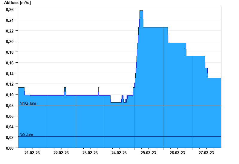 - Mittlerer Niedrigwasserabfluss MNQ 0,08 m³/s
