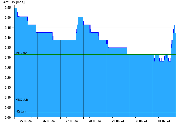 - Mittlerer Niedrigwasserabfluss MNQ 0,08 m³/s
