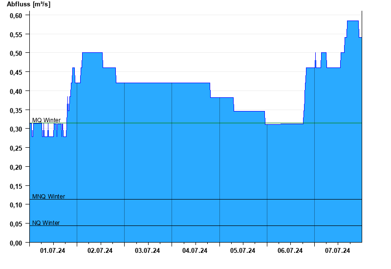 - Mittlerer Niedrigwasserabfluss MNQ 0,113 m³/s
