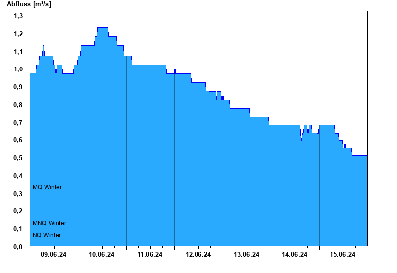 - Mittlerer Niedrigwasserabfluss MNQ 0,113 m³/s