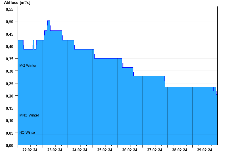 - Mittlerer Niedrigwasserabfluss MNQ 0,113 m³/s