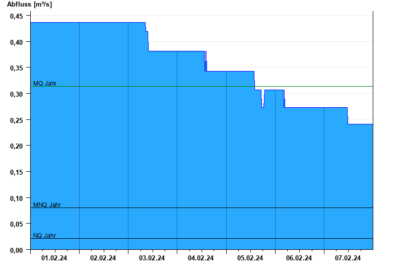 - Mittlerer Niedrigwasserabfluss MNQ 0,08 m³/s