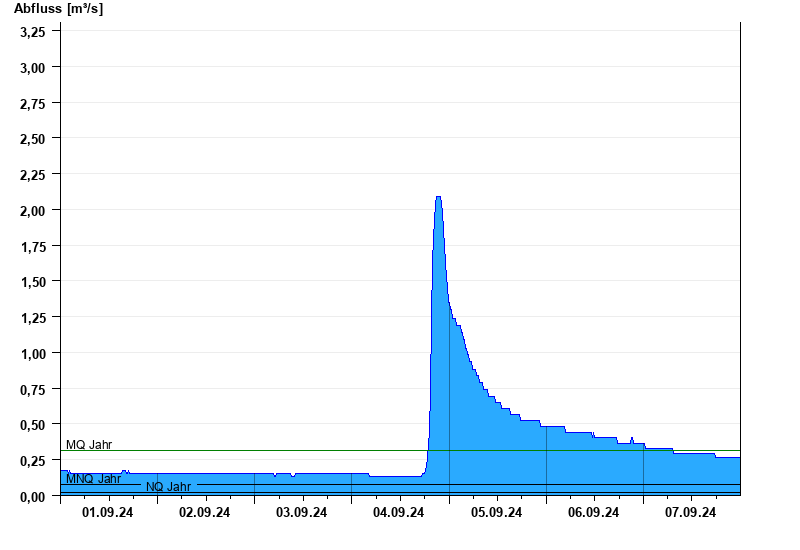 - Mittlerer Niedrigwasserabfluss MNQ 0,08 m³/s