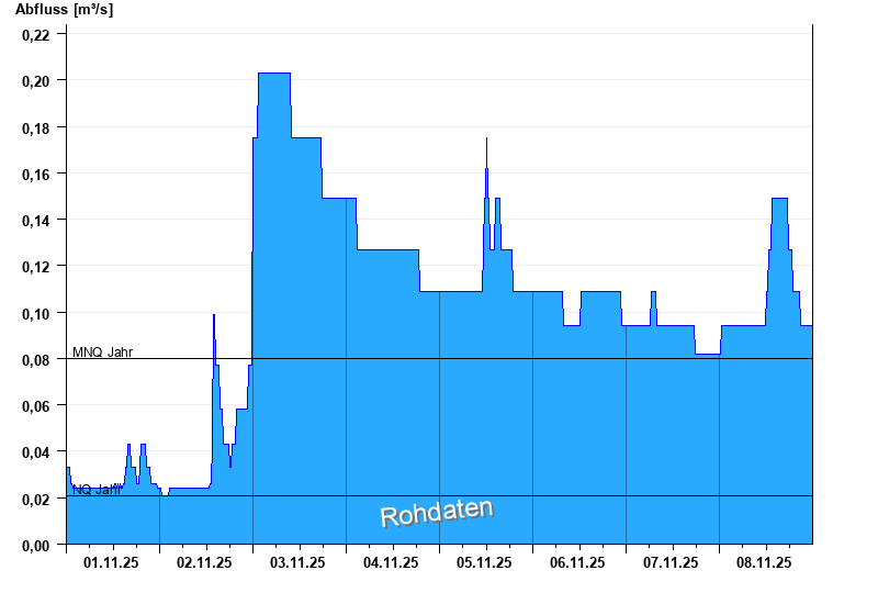 - Mittlerer Niedrigwasserabfluss MNQ 0,08 m³/s