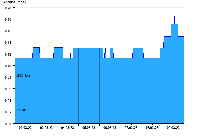 - Mittlerer Niedrigwasserabfluss MNQ 0,08 m³/s