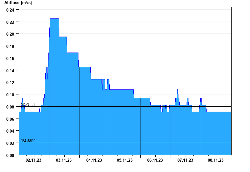 - Mittlerer Niedrigwasserabfluss MNQ 0,08 m³/s