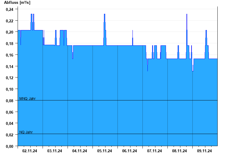 - Mittlerer Niedrigwasserabfluss MNQ 0,08 m³/s