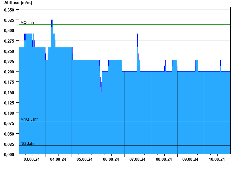 - Mittlerer Niedrigwasserabfluss MNQ 0,08 m³/s