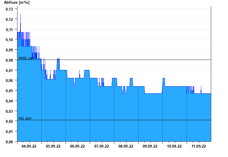 - Mittlerer Niedrigwasserabfluss MNQ 0,08 m³/s