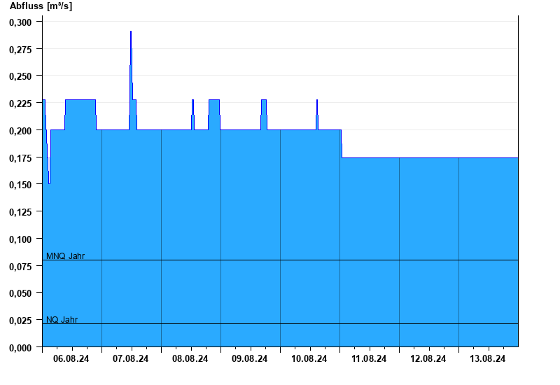 - Mittlerer Niedrigwasserabfluss MNQ 0,08 m³/s