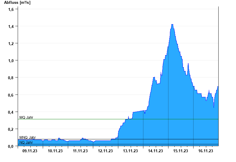 - Mittlerer Niedrigwasserabfluss MNQ 0,08 m³/s