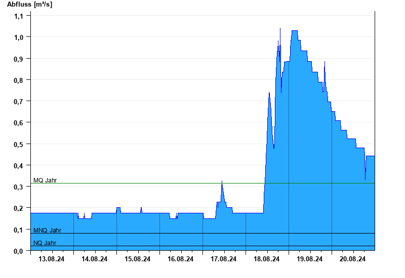 - Mittlerer Niedrigwasserabfluss MNQ 0,08 m³/s