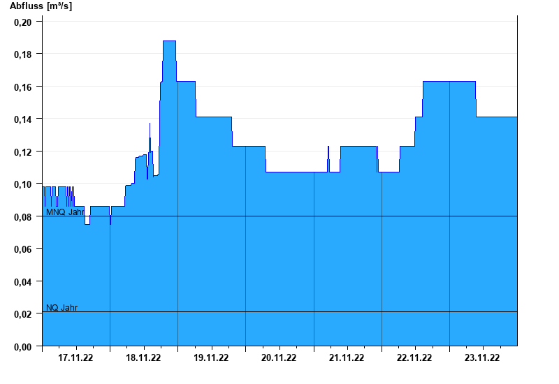 - Mittlerer Niedrigwasserabfluss MNQ 0,08 m³/s