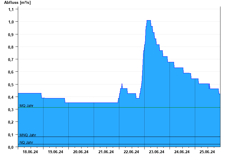 - Mittlerer Niedrigwasserabfluss MNQ 0,08 m³/s