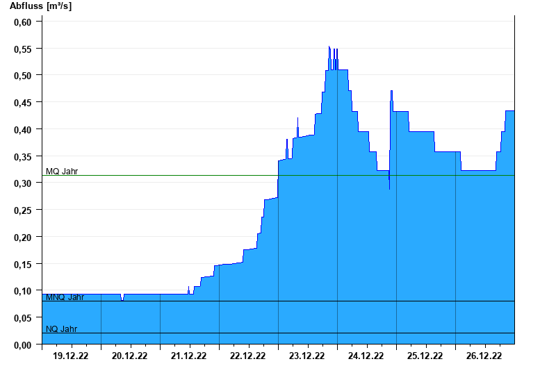 - Mittlerer Niedrigwasserabfluss MNQ 0,08 m³/s