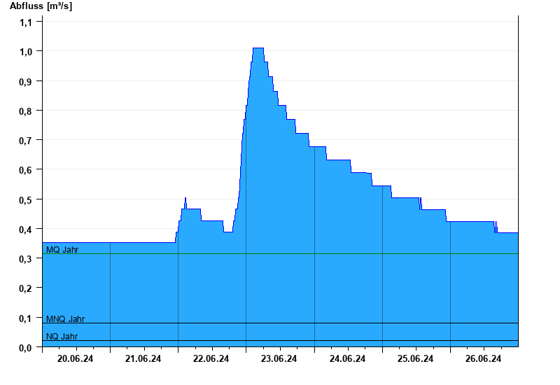 - Mittlerer Niedrigwasserabfluss MNQ 0,08 m³/s