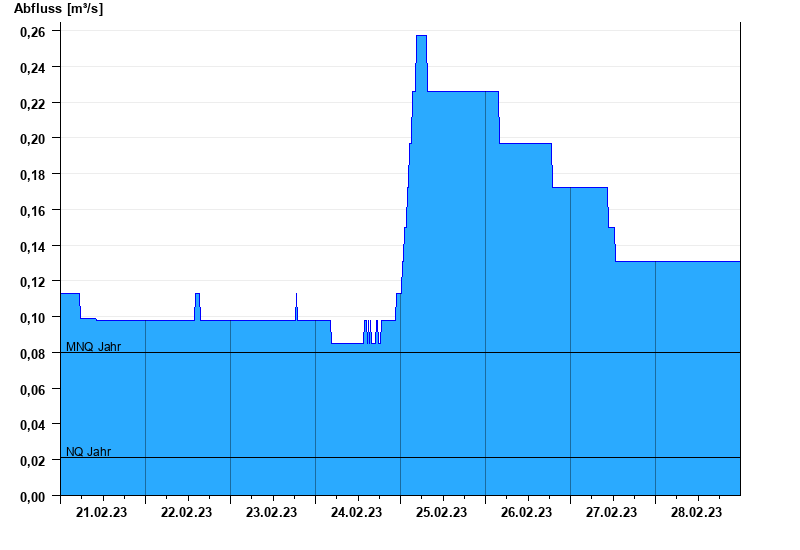 - Mittlerer Niedrigwasserabfluss MNQ 0,08 m³/s
