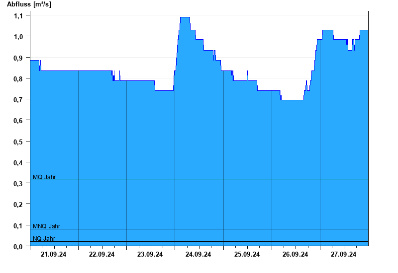 - Mittlerer Niedrigwasserabfluss MNQ 0,08 m³/s