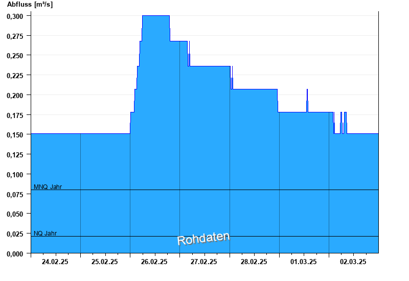 - Mittlerer Niedrigwasserabfluss MNQ 0,08 m³/s
