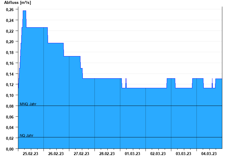 - Mittlerer Niedrigwasserabfluss MNQ 0,08 m³/s